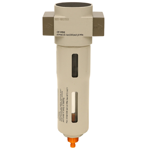 The OF with water separator cleans the compressed air of fluid oil, condensation and dirt particles, for special application, the standar d 40μm filter element may easily be replaced by a 5μm filter element.